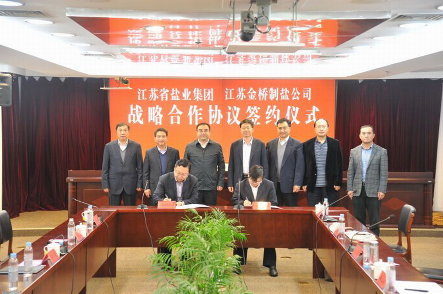 11月8日下午,金橋制鹽公司在南京與江蘇省鹽業集團簽署戰略合作協議。集團公司董事長、黨委書記楊龍,副總經理楊國新以及金橋制鹽公司負責人參加了簽約儀式。簽約儀式前,楊龍董事長與省鹽業集團總經理唐正東、副總經理鄭海龍以及相關部門負責人就應對食鹽改革舉行了工作會談。