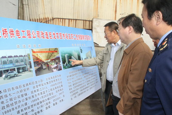 在巨龍農貿市場,范總向秦國丞副秘長簡要匯報了巨龍農貿市場的基本情況以及改造方案,通過改造實現市場空間布局合理化、設施建設標準化、長效菅理規范化的總體目標。秦國丞副秘書長對公司巨龍農貿市場的改造方案給予較高評價,充分肯定了公司在創建國家文明衛生城市、加強我市菜藍子工程建設、提升群眾幸福指數方面作出的貢獻;同時,要求我公司繼續深入調研,盡快制定具體實施方案,報政府部門審批;并指示隨行的有關部門人員,要給予全力配合,對改善民生工程開綠燈。(司宣 盧正清)