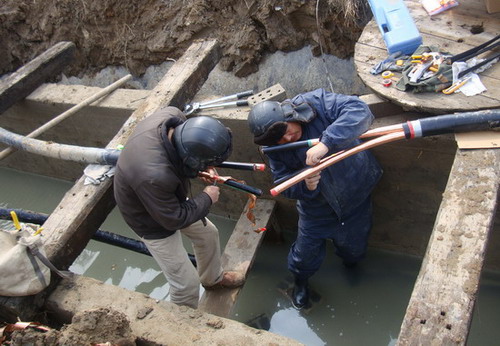 此項改造工程要求將原來的電桿高架改為地下電纜鋪設,距離800米,雙線電纜,兩條出線,工程量130萬元,并在春節前結束,確保新醫藥產業區的美化和亮化。施工正值隆冬季節,天氣寒冷,給施工帶來很大困難。職工們發揚不怕苦、不怕累的精神,破開凍土層,理順冷縮的電纜,沿預設管道穿越。零下9度的氣溫,伴著呼呼的北風,刮在人的臉上象針剌,握著操作工具的手,有時不聽使喚,掉落地下,重又拾起。寒冷中,額頭沁出汗珠,身上透出熱氣,忽冷忽熱,使人身體適應環境極不協調,給人健康帶來不利。