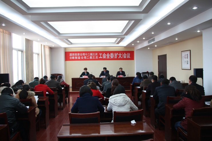 3月24日上午,公司工會在機關四樓會議室召開灌西投資公司十二屆三次、日曬制鹽公司二屆三次工會全委擴大會議,各單位的工會主席、女工主任及受表彰的先進個人參加會議,黨委書記、董事長王德志、工會主席王保平出席會議,會議由投資公司工會副主席、女工主任王宏主持。