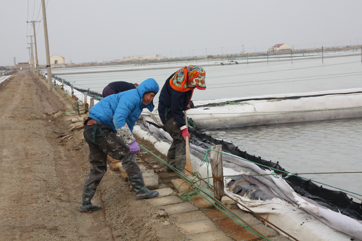2月6日上午,在新河制鹽分公司的九班,我們看到工人們正在下馬格內(nèi)和格,為盡快灌池生產(chǎn)打好基礎(chǔ),在十班,工人有的正在清除硫酸鈣,有的修整結(jié)晶池埝,而在八班的灘頭,一臺挖掘機(jī)正在鹽廩上裝鹽銷售,日曬制鹽公司廣大員工掀起春季生產(chǎn)熱潮,處處都是忙碌景象。據(jù)了解,隨著市場回暖,日曬制鹽公司的原鹽銷售較前兩年同期無論是在數(shù)量上,還是在價格上都有所增長。為了抓住這一難得的銷售機(jī)遇,不斷擴(kuò)大市場占有率,公司計劃組織兩個制鹽分公司在近期開展扒鹽工作,以確保原鹽銷售工作不中斷。為此,各生產(chǎn)單位緊緊圍繞這一工作重心,在抓好日常生產(chǎn)的同時,精心做好扒鹽前的各項(xiàng)準(zhǔn)備工作,努力確保扒鹽工作正常有序開展。與此同時,部分尚不具備扒鹽條件的班組則抓緊時間做好除硫池清理、撤格池板的整平以及土工布更換等工作,為春季生產(chǎn)做好各項(xiàng)準(zhǔn)備工作。(封楊)