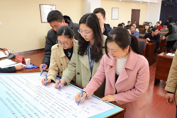 談話會上,四名新提拔干部代表分別作表態發言并進行集體廉政承諾和集中簽名。(西宣)