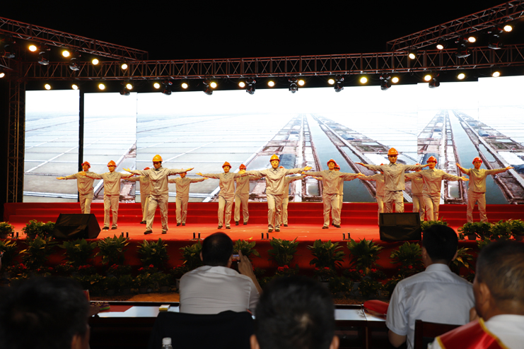 第二篇章“使命擔(dān)當(dāng)”,以廣場舞《我和我的祖國》開篇,回顧歷史,展望未來,祖國在我們心頭變得更加清晰,讓我們倍感光榮和自豪。三句半《奮進新時代、再創(chuàng)新輝煌》回顧日曬制鹽十年發(fā)展,十年的奮斗歷程。《雜技》、小品《平安是福》以安全為主題,讓公司揚起安全的航船,以高質(zhì)高效、創(chuàng)新創(chuàng)優(yōu)的風(fēng)帆起航。