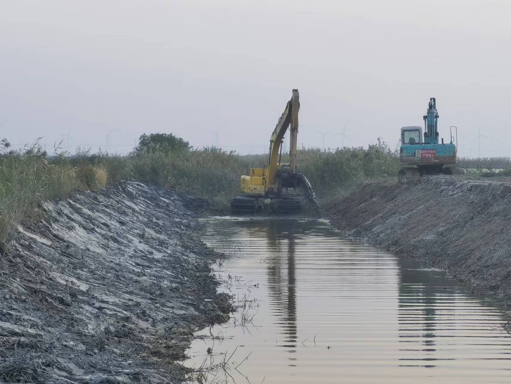 為保證養殖區池塘產品正常起捕,資源管理中心針對轄區內進、排水系統進行摸排,配合投資發展部爭分奪秒完成進排水渠道疏竣工程近4000米。為下步池塘發包打下扎實基礎。(資源管理中心)