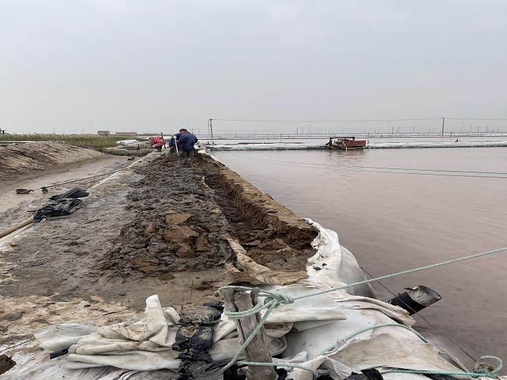 原鹽產量、質量一直是企業的生命線,而如何把控好質量關,冬準工作尤為重要。20日下午,公司經理程龍一行,在提前結束秋扒的6班召開了現場會,要求各片區負責人督促好扒過鹽的格塊整理,利用當前晴好天時做好除硫工作,保證越冬鹵水全部除硫;同時指出,當前天氣情況多變,為應對多變天時,工作要抓前、抓早提前進入“冬準”狀態;為了提高池埝的密實度,減少鹵水側向滲漏,每條池堰都要進行人工踩壓、和熟、做實,嚴格修灘標準化,達到“溝底、坡面、埝頂”,三面見光,溝道平整、條條上線。