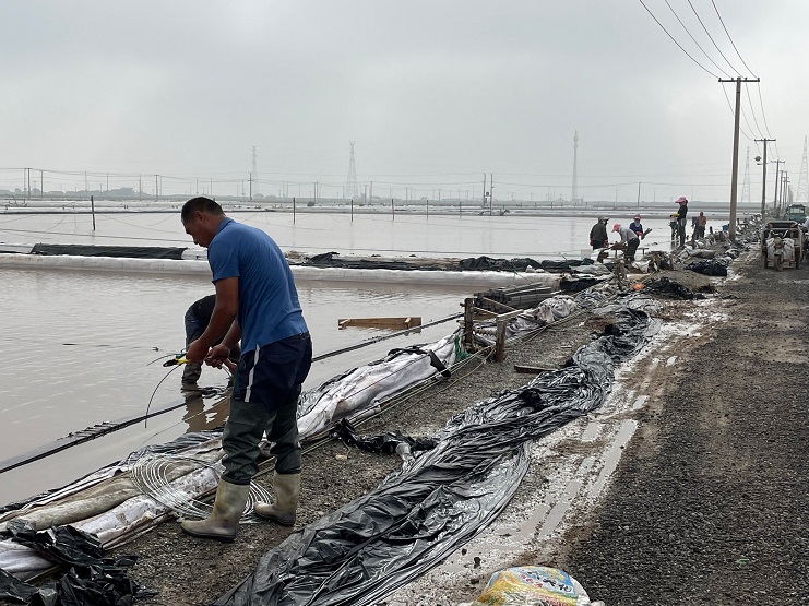 新河制鹽分公司全力做好塑布更換工作