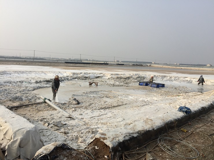 新河制鹽利用有利天時(shí)做好硫酸鈣清理工作