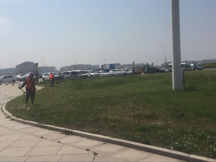 4月24日上午,南翼公司綠化組長張東貴帶領幾名綠化工人,對臨港產業區管委會門前草坪內的雜草和垃圾進行清理,有效地改善了環境衛生,進一步美化了環境。(王薇)