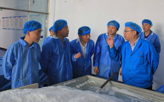 張剛、周軍一行先后參觀了我公司雪花鹽車間、加工鹽車間和包裝鹽車間,了解了我公司海鹽產品的生產工藝和流程。隨后,座談了解了我公司當前的生產經營能力、設施設備、質量管理、營銷渠道等情況。(金宣)