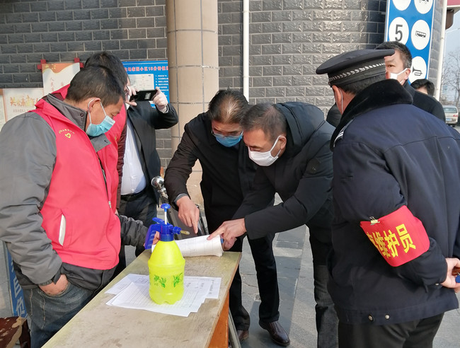 在鹽場家園小區門口,防控新型冠狀病毒感染的肺炎疫情防控知識通過喇叭反復播放,門口值班人員“全副武裝”,建立來客登記和體溫檢查應急措施。劉主席一行詳細查看了小區入口車輛的排查情況,了解小區針對疫情采取的措施后強調,要繼續依靠小區居民,加大宣傳力度,營造防控疫情,人人有責的強烈氛圍,公司全體職工要時刻繃緊防控這根弦,思想上要更加重視,安排上更加嚴密,措施上更加務實,發揚釘釘子的精神,堅持把人員管理作為防控工作的中心環節,每家每戶上門排查、工作人員要戴好口罩,把防疫工作的各項要求落到實處。同時,黨員干部要充分發揮先鋒模范作用和支部的戰斗堡壘作用,讓黨旗在防控疫情斗爭的第一線高高飄揚,凝心聚力,堅決打好疫情阻擊攻堅戰。