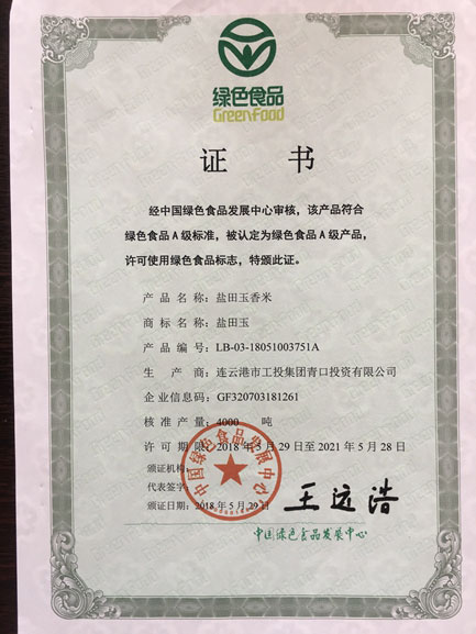 經(jīng)過 2年時間的奔波和整理材料,“鹽田玉”米于2018年5月通過認證,獲得綠色食品標(biāo)志使用權(quán)。