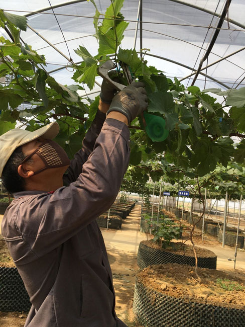 走進炎熱的六月,種養中心大棚內的葡萄也迎來了第三個果期 ——坐果,果實的第一次膨大。中心工作人員及時 摘心、去副梢,適當控制營養生長,以利于集中營養供應果實的生長發育;及時綁縛新梢,為下一期的轉色、成 熟做好鋪墊。(宋姍姍)