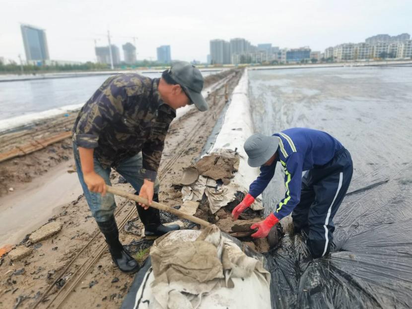 益豐園林分公司立即成立防汛應(yīng)急黨員志愿隊(duì)伍,及時(shí)排查80畝苗圃基地水情。黨員同志們發(fā)揮先鋒模范作用,面對(duì)風(fēng)雨交加的環(huán)境奮勇?tīng)?zhēng)先,清雜草疏通水道、開(kāi)挖排水溝加強(qiáng)排水、清理倒伏樹(shù)木……不畏艱難不怕臟累,用實(shí)際行動(dòng)展現(xiàn)黨員擔(dān)當(dāng);裕達(dá)分公司強(qiáng)化汛期值班值守,雙人加強(qiáng)值班,多頻次安全巡視,特別是對(duì)德蘭光伸市場(chǎng)商鋪及院內(nèi)廠房開(kāi)展點(diǎn)對(duì)點(diǎn)排查,期間多次對(duì)院內(nèi)排水管道及時(shí)疏通清理,防止管道堵塞雨水倒灌發(fā)生;美多利第一時(shí)間啟動(dòng)防汛排澇應(yīng)急預(yù)案,安排黨員突擊隊(duì)在園區(qū)易積水點(diǎn)提前布置排水設(shè)施,清除雜物雜草堵塞,確保排水渠通暢,切實(shí)把強(qiáng)降雨對(duì)入駐企業(yè)的影響降到最低;資源分公司一方面全力做好保鹽保鹵工作,加強(qiáng)結(jié)晶區(qū)排水作業(yè),做好防風(fēng)措施,確保鹽、鹵安全。另一方面,養(yǎng)殖辦積極巡視水情、池塘溝堰巡查,加強(qiáng)與養(yǎng)殖戶聯(lián)系,及時(shí)處理積水,全力做好防澇服務(wù)。