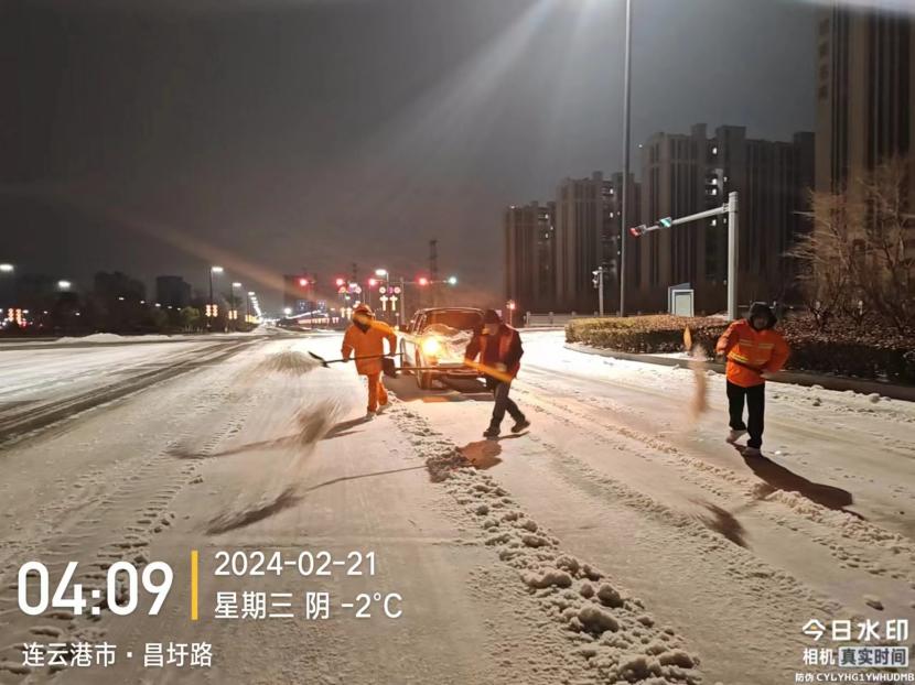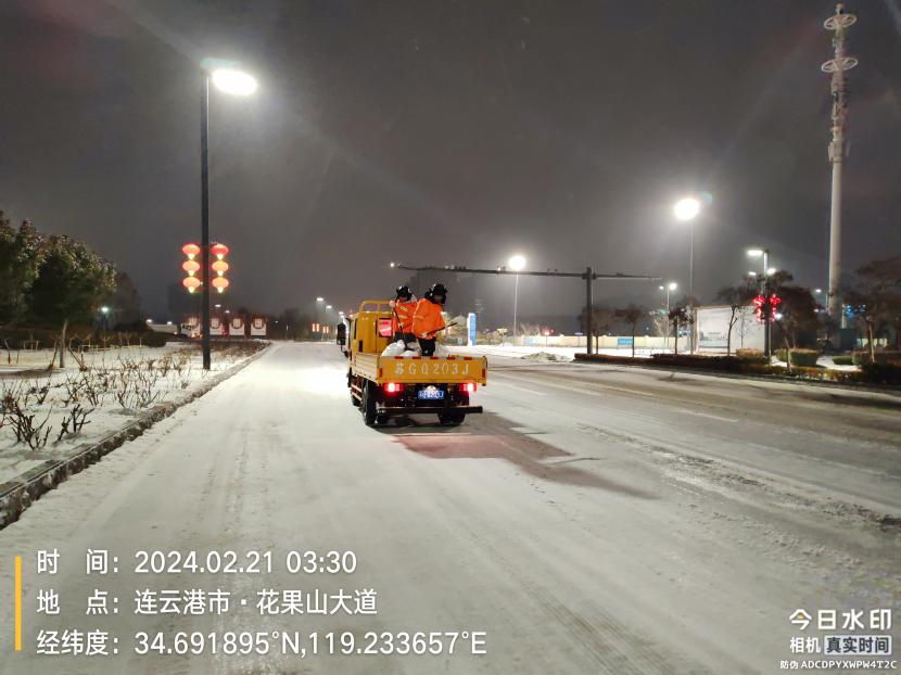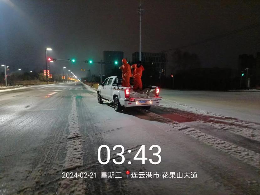 受寒潮影響,2月20日下午,港城普降“冰雪+冰粒”,投資公司第一時間啟動惡劣天氣應急處置預案,道路保潔、市政養護、后勤保障等戰線的干部職工以雪為令,在重點區域、重點路段、坡道、橋梁、涵洞等結冰路段進行撒鹽融雪融冰作業,全力以赴除冰雪、防事故、護平安,為市民群眾出行一路“護航”。