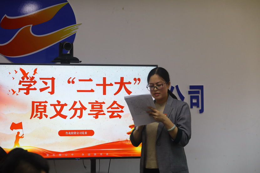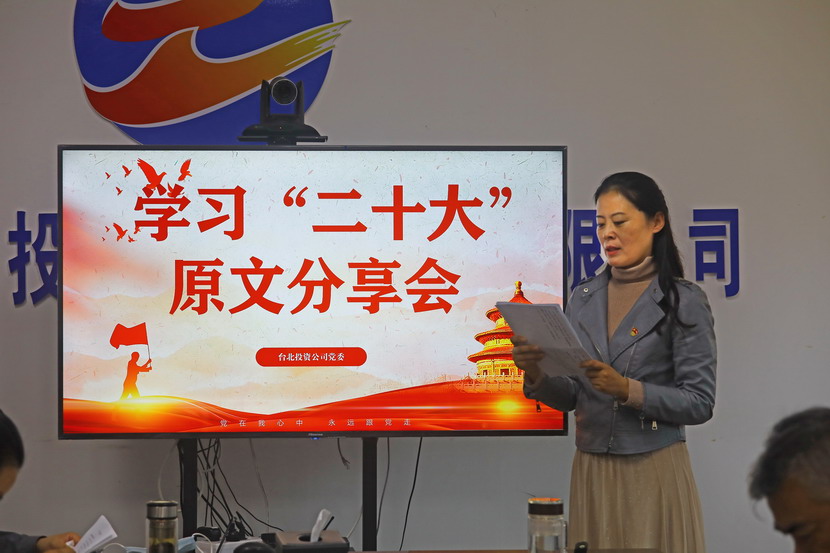 1021日,臺北投資公司黨委組織召開黨的二十大報告學習交流會,每位同志閱讀報告原文,針對報告內容結合工作實際,分享心得體會、暢談工作思路、謀劃未來發展。