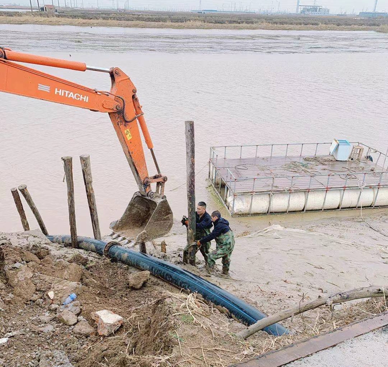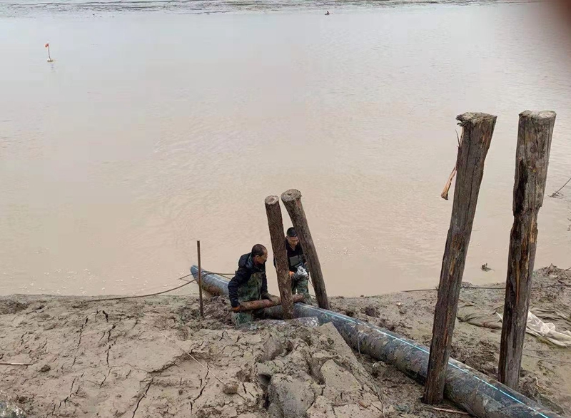 ?一想到昨天管道巡查到這里的情形,現在還讓人“心有余悸”!因管道地處善后河彎道處,常年的泄洪沖刮將河邊覆蓋管道的泥土沖刷卷走,使得岸邊泥土下原本穿越的PE315管道已經暴露出來,退潮時的旋流不斷地沖撞著漂浮起來的鈣液管道,劇烈抖動著的管道不時發出“噗噗的低吼”隨時可能折斷。埒子口潮河段是鈣液東輸灌西管道最長的一節過河穿越,全長約300米。穿越管道如果折斷在河底后果將不可想象、經濟損失也是不可估量的,這一幕讓在場所有人員都為之捏了一把汗!