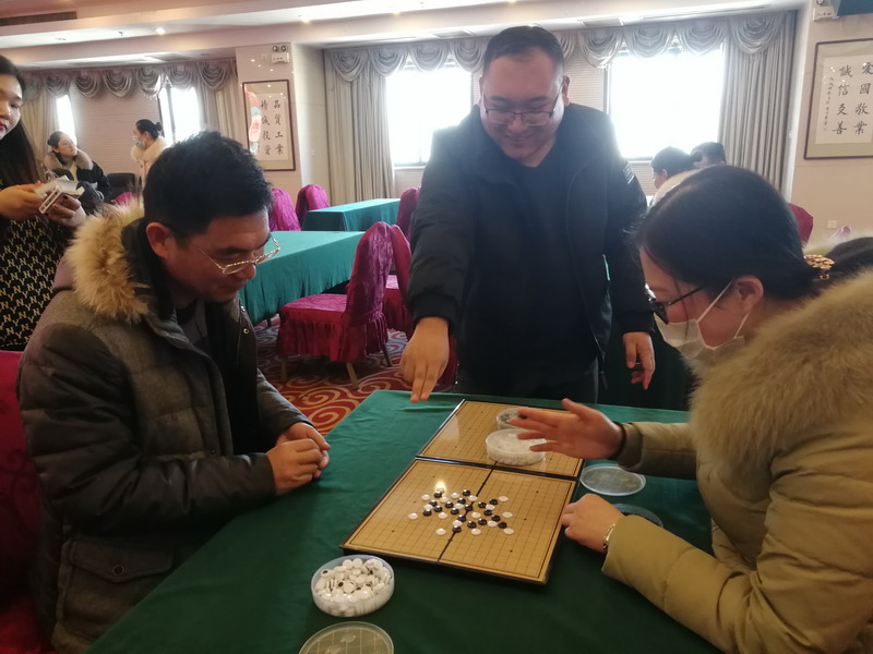 機(jī)關(guān)分會(huì)迎新春活動(dòng)中,公司領(lǐng)導(dǎo)、部門負(fù)責(zé)人和普通員工同臺競技,賽場氣氛活躍。套圈比賽有的選手運(yùn)用了射擊技藝--“睜只眼閉只眼”瞄準(zhǔn)。摜蛋賽場上,選手們密切配合,精確計(jì)算、沉著應(yīng)戰(zhàn)。圍棋場上,對陣雙方比智慧,賽成績,精彩時(shí)刻圍觀者更顯著急,直接替選手落子......