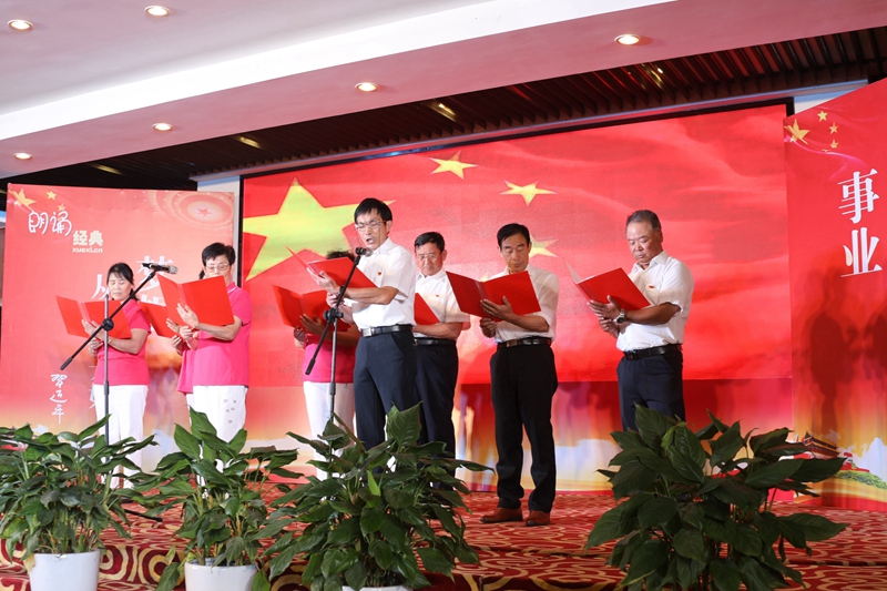 在莊嚴(yán)地國歌聲中,演出拉開了序幕。15組參賽選手用他們真摯的情感、優(yōu)美的語言,歌頌新中國71年來取得的輝煌成就,表達(dá)自己對黨、對國家、對人民的熱愛。《禮贊新時(shí)代,賀彩我中國》,四位表演者用激昂語言帶大家回顧了今年的“大事件”,中國早已不是1842年的樣子,現(xiàn)在的中國有能力,更有信心來應(yīng)對百年未有之大變局;在東方,有一條騰飛的巨龍,在東方,有一個(gè)巨龍的民族——《讀中國》,這就是華夏中國,讓我們在“紅旗漫卷的西風(fēng)中,讀繁榮昌盛的中國”;《習(xí)近平談治國理政(第三卷)》的出版是我們繼第一卷、第二卷之后又一個(gè)人生的指路明燈,讀后感想《珍惜韶華,不負(fù)青春》中,朗誦者聯(lián)系企業(yè)發(fā)展,向大家傳述了只有要擼起袖加油干,才能“珍惜韶華,不負(fù)青春”;《不朽》,五星紅旗凝聚了奮進(jìn)的力量,五星紅旗迎風(fēng)飄揚(yáng),逐夢航程,書寫出不朽的豐功偉績······在臺(tái)北有一群老干部、老黨員,退崗不退休,彰顯新作為,為企業(yè)發(fā)展出謀劃策,為臺(tái)北和諧穩(wěn)定貢獻(xiàn)力量,老黨員們帶來的詩歌朗誦為整場演出畫上了圓滿的句號(hào)。