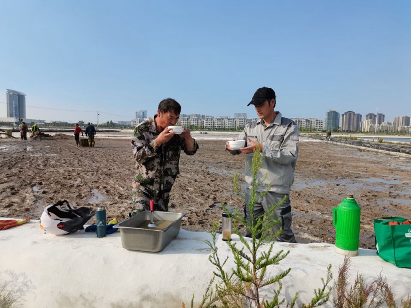 在高溫、高濕、高鹽的鹽田里,鹽工們需要補(bǔ)充大量的水分以維持體力。為保障職工安全作業(yè),提高扒鹽效率,鼓舞工作干勁,海州灣工會(huì)深入灘頭采取多種措施做好后勤服務(wù)工作。一是由跟班人員24小時(shí)提供熱水、綠豆湯,確保職工體力充沛;二是為職工解決“一日三餐”問題,安排專人負(fù)責(zé)“三班制”飲食,注重營養(yǎng)配比,確保職工全身心投入生產(chǎn);三是配備安全反光馬甲,確保職工大小夜班交通安全。