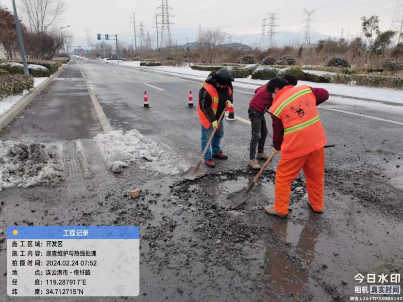 由于連續的暴雪席卷港城,使轄區道路路面遭受不同程度的凍害,出現坑塘、裂縫等情況,給群眾出行帶來安全隱患。盛達市政分公司于22日開始,晨起早、晚加班,開展雪后道路排患工作,快速處理雪后各項道路病害問題,為道路通行安全提供有力保障。