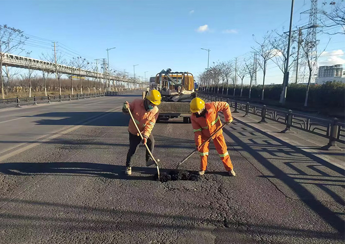 受近期冬季雨雪冰凍天氣影響,徐圩新區(qū)部分道路出現(xiàn)瀝青路面破損、龜裂等現(xiàn)象嚴(yán)重,坑洼的路面不僅影響道路通行安全,也影響了城區(qū)形象。為防止路面坑槽及延伸病害的快速發(fā)展,近日,市政分公司及時組織兩班人馬,10名道路養(yǎng)護(hù)人員,加班加點對新區(qū)破損瀝青路面進(jìn)行全面修補。